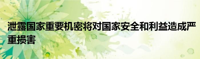 泄露国家重要机密将对国家安全和利益造成严重损害